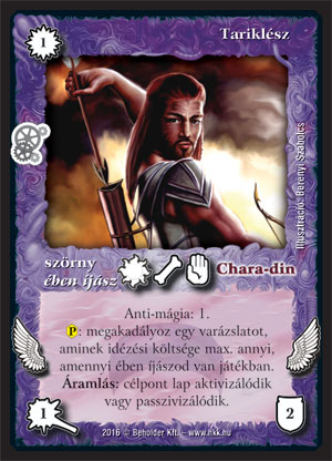 Káoszhullám (8): Chara-din is megkapta a maga helyettesíthető költségű 4 manás lapját. Mivel pakliból kereshető lila kártya egyelőre még nincs, ezért annyira univerzális nem lesz, mint például A szirének hívása, de Chara-din követője vagy éppen Bilincs mellé - ahova a lila újból alap szín lehet - mindenképpen érdemes használni. Az esetek többségében Mhorgot fogunk vele kérni.