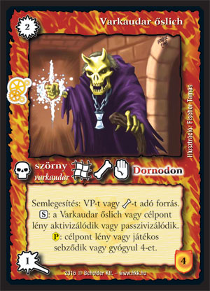 Varkaudar őslich (6): A Pénznyelő sajnos már bizonyította, hogy ez a fajta counter képesség önmagában nem elég ahhoz, hogy használjunk egy lapot - pedig az 1 zanszilánkért jött és elég jó kis asztalról működő képessége volt! Ha ahhoz hasonlítjuk, az őslich-re nem vár túlságosan fényes jövő. Kragoru pakliba jöhet még szóba, ott nagy körönként oda tud lőni 8-at vagy le tud szedni két lényt - nem mondanám kifejezetten parádésnak.