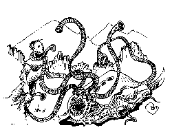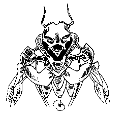 Két ízelt kar támaszkodott meg mellette, kétoldalt a talajon. Egy fej, óriási állkapcsú fej hajolt egészen közel Ronhoz. A közönyös szemek a férfit vizslatták. Ugy látszik, nem okozott nekik örömet a látvány. Landorr várta, hogy karmok tépjenek bele, fogak morzsolják szét, de semmi sem történt. A lény mintha töprengett volna, mihez is kezdjen most. Harchoz, jobb esetben menekülo áldozatokhoz szokott. Ez meg itt meg se mozdul. Azért így is jó falat lehet...