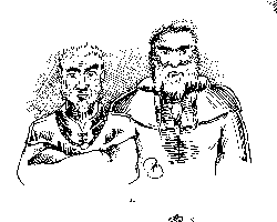 A kocsma ablakából kiszüremkedő fényben Landorr most tudta először szemügyre venni segítőinek szürkés arcvonásait. Emberek voltak mindketten, de pár pillanatra a részeg szeme nem tudta megkülönböztetni őket. Szelíd erőszakkal kivonta a jobbját segítői kezéből, s megdörgölte a szemeit. Ahogyan kitisztult a látása, már látta, hogy a jobb oldalon álló férfi szikkadt, erős tartású öregember, míg a baloldali egy harminc év körüli, nagydarab, szakállas fickó, aki a szakállát ember mivolta ellenére jakkar módra, kis bőrszíjakra fűzött tincsekben viselte.