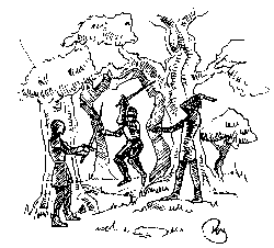 A nagydarab férfinek sikerült kikerülnie a csapást. Talán maga sem értette, miért hajolt el, amikor meghallotta Ron kiáltását. A jakkar fejszéje, amivel egy oldalvágással akarta lemetszeni Tan 'Derros fejét, belefeszült egy fa törzsébe, és a bandita fegyver nélkül maradt.