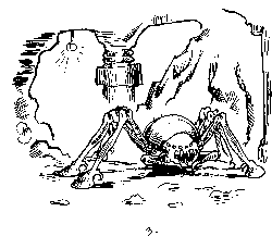 Sziklazúzó alig láthatóan biccentett, majd csápjával ütemesen verdesni kezdte a kis csarnok falát. Mintha csak a csáp hangjára figyeltek volna fel, a womathok abbahagyták a legelészést, és fülelni kezdtek, majd a bárd is abbahagyta a húrok pengetését. Másodpercekkel később a womathok pánikszerűen elhagyták a csarnokot. Ruden ekkor pillantotta meg az egyik járatból betüremkedő albínó pókokat. A torzszülöttek rögtön megindultak a magára maradt bárd felé, aki sebtiben felmászott egy picinyke sziklára. A megrémült galetki tudta, hogy innen nem menekülhet és az óriási pókoknak nem tart majd sokáig a szikla megmászása.