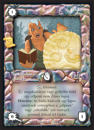 Szöveg: (S), feltámad. (K): megakadályoz vagy gyűjtőbe küld egy célpont nem Zénes lapot. Hátrány: ha bárki kijátszik egy lapot, amin a "célpont" vagy "sebződik" szó szerepel, azonnal áldozd fel Gidát!