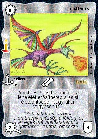 Szinesítő szöveg: "Sok hatalmas és erős teremtmény nyüzsög a földön, de az egek ura vitathatatlanul a griffőnix." - Aritma, elf kósza