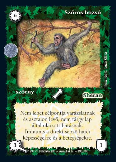 Hatalom Kártyái kártyalap - Szőrös bozsó |  | - Kinézet - (A szavazáshoz be kell jelentkezned!) (átlag: 6 szavazat alapján 8.7)