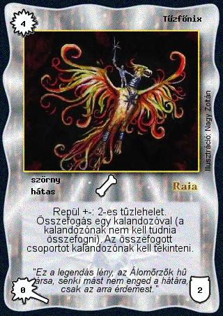 Szöveg: Repül +-: 2-es tűzlehelet. Összefogás egy kalandozóval (a kalandozónak nem kell tudnia összefogni). Az összefogott csoportot kalandozónak kell tekinteni.