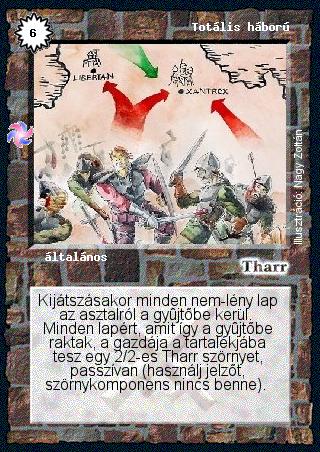 Szöveg: Kijátszásakor minden nem-lény lap az asztalról a gyűjtőbe kerül. Minden lapért, amit így a gyűjtőbe raktak, a gazdája a tartalékjába tesz egy 2/2-es Tharr szörnyet, passzívan (használj jelzőt, szörnykomponens nincs benne).