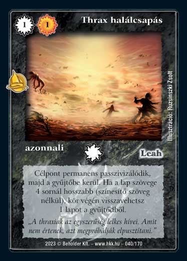 Szinesítő szöveg: "A thraxiak az egyszerűség lelkes hívei. Amit nem értenek, azt megpróbálják elpusztítani."