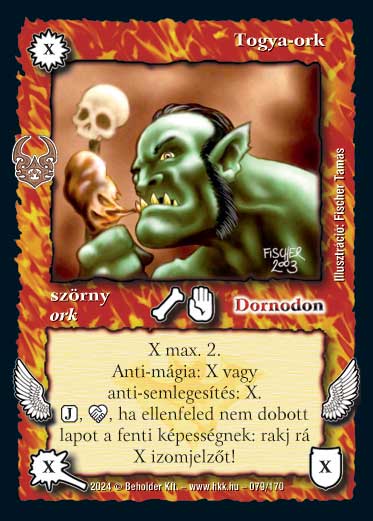 Szöveg: X max. 2. Anti-mágia: X vagy anti-semlegesítés: X. (J), _etnikum, ha ellenfeled nem dobott lapot a fenti képességnek: rakj rá X izomjelzőt!
