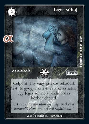 Szöveg: Célpont lény vagy játékos sebződik 2-t, te gyógyulsz 2-t, és kikereshetsz egy Jeges sóhajt a paklidból és kézbe veheted.