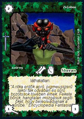 Szinesítő szöveg: "A ritka erdők apró, pigmeusszerű lakói fák odvában és sűrű bozótosok tövében élnek. Fekete bőrük, hangtalan mozgásuk segíti őket, hogy beleolvadjanak a sűrűbe." Encyclopedia Fantasia