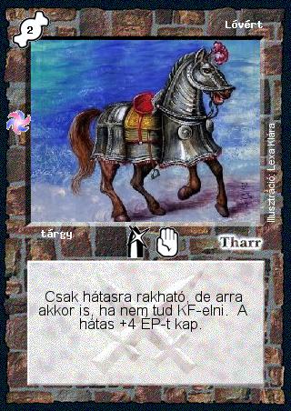 Szöveg: Csak hátasra rakható, de arra akkor is, ha nem tud KF-elni. A hátas +4 ÉP-t kap.