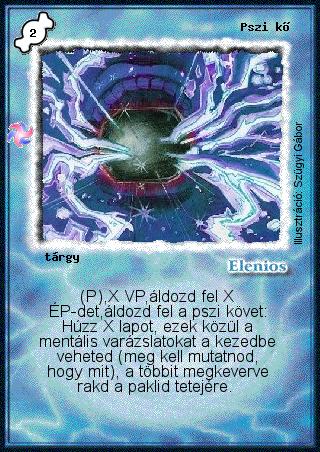 Szöveg: (P),X VP,áldozd fel X ÉP-det,áldozd fel a pszi követ: Húzz X lapot, ezek közül a mentális varázslatokat a kezedbe veheted (meg kell mutatnod, hogy mit), a többit megkeverve rakd a paklid tetejére.