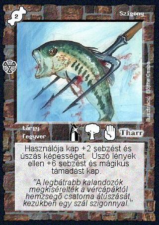Szöveg: Használója kap +2 sebzést és úszás képességet. Úszó lények ellen +6 sebzést és mágikus támadást kap.