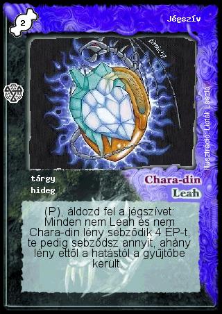 Szöveg: (P), áldozd fel a jégszívet: Minden nem Leah és nem Chara-din lény sebződik 4 ÉP-t, te pedig sebződsz annyit, ahány lény ettől a hatástól a gyűjtőbe került.