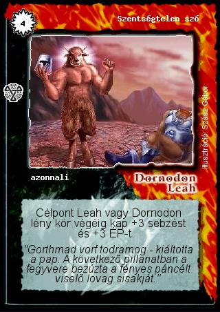 Szöveg: Célpont Leah vagy Dornodon lény kör végéig kap +3 sebzést és +3 ÉP-t.