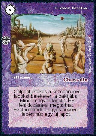 Szöveg: Célpont játékos a kezében levő lapokat belekeveri a paklijába. Minden egyes lapot 2 ÉP feláldozásával megtarthat. Ezután minden egyes bekevert lapért húz egy új lapot.