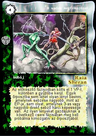 Szöveg: Az előkészítő fázisodban költs el 1 VP-t, különben a gyűjtőbe kerül. Egyik őrposztba sem lehet olyan lényt bevinni, amelynek sebzése nagyobb, mint az ÉP-je, sem olyat, amelynek 3-as vagy nagyobb direkt sebző harci képessége van. Az ilyen lényeket gazdájuknak a következő csere fázisában meg kell próbálnia kimozgatni az őrposztjából.
