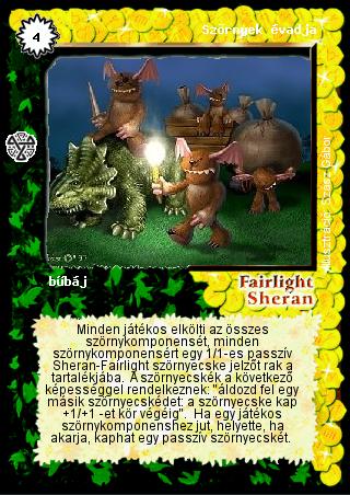 Szöveg: Minden játékos elkölti az összes szörnykomponensét, minden szörnykomponensért egy 1/1-es passzív Sheran-Fairlight szörnyecske jelzőt rak a tartalékjába. A szörnyecskék a következő képességgel rendelkeznek: "áldozd fel egy másik szörnyecskédet: a szörnyecske kap +1/+1 -et kör végéig". Ha egy játékos szörnykomponenshez jut, helyette, ha akarja, kaphat egy passzív szörnyecskét.