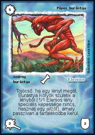 Szöveg: Tojócső: ha egy lényt megöl, Burástya Kölyök születik a lényből (1/1 Elenios lény, speciális képessége nincs, használj egy jelzőt), amely passzívan a tartalékodba kerül.