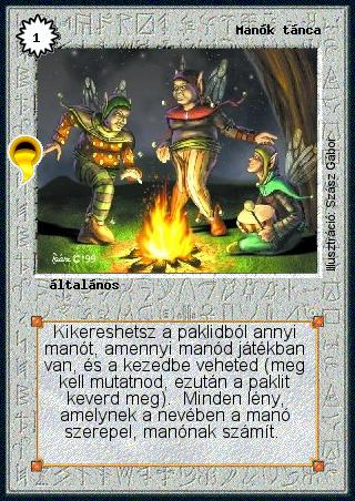 Szöveg: Kikereshetsz a paklidból annyi manót, amennyi manód játékban van, és a kezedbe veheted (meg kell mutatnod, ezután a paklit keverd meg). Minden lény, amelynek a nevében a manó szerepel, manónak számít.