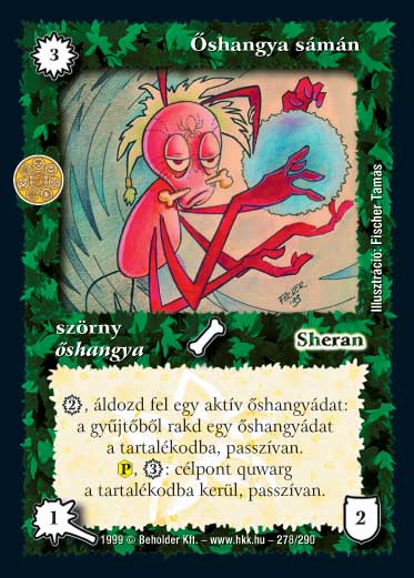 Hatalom Kártyái kártyalap - Őshangya sámán |  | A lap felújított változata (ahogy egy késõbbi kiegészítõben megjelent)