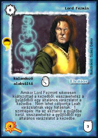Szöveg: Amikor Lord Fezmint sikeresen kijátszottad a kezedből, visszavehetsz a gyűjtődből egy általános varázslatot a kezedbe. Nem lehet célpontja Leah varázslatnak vagy hatásnak. 1 szintlépés: Ha az asztalról a gyűjtőbe kerül, visszavehetsz a gyűjtődből egy általános varázslatot a kezedbe.