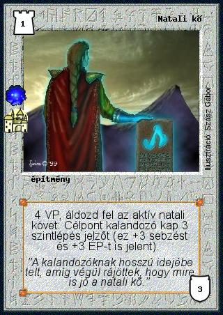 Szöveg: 4 VP, áldozd fel az aktív natali követ: Célpont kalandozó kap 3 szintlépés jelzőt (ez +3 sebzést és +3 ÉP-t is jelent).