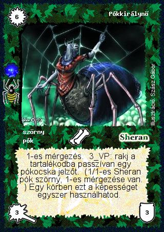 Szöveg: 1-es mérgezés. 3 VP: rakj a tartalékodba passzívan egy pókocska jelzőt. (1/1-es Sheran pók szörny, 1-es mérgezése van. ) Egy körben ezt a képességet egyszer használhatod.