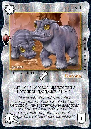 Szinesítő szöveg: "A womathok a mélyen fekvő barlangcsarnokokban élő békés kérődzők. Vaksi szemükkel állandóan a sötétséget fürkészik, és ha kell, megvédik magukat a homály ragadozóitól hatalmas patáikkal."
