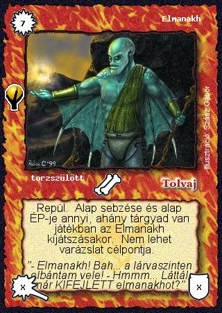 Szöveg: Repül. Alap sebzése és alap ÉP-je annyi, ahány tárgyad van játékban az Elmanakh kijátszásakor. Nem lehet varázslat célpontja.