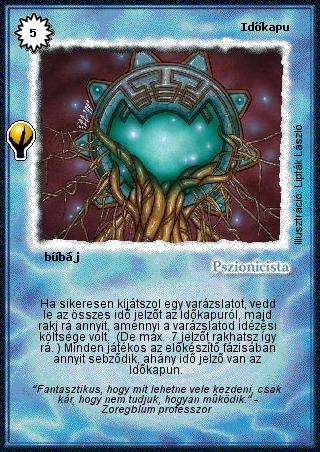 Szöveg: Ha sikeresen kijátszol egy varázslatot, vedd le az összes idő jelzőt az Időkapuról, majd rakj rá annyit, amennyi a varázslatod idézési költsége volt. (De max. 7 jelzőt rakhatsz így rá. ) Minden játékos az előkészítő fázisában annyit sebződik, ahány idő jelző van az Időkapun.