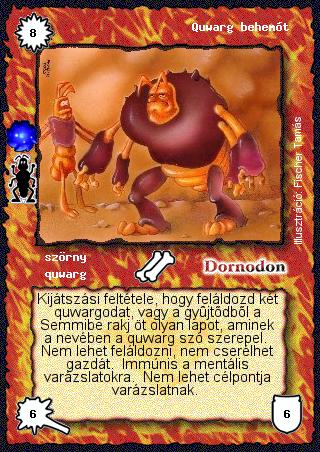 Szöveg: Kijátszási feltétele, hogy feláldozd két quwargodat, vagy a gyűjtődből a Semmibe rakj öt olyan lapot, aminek a nevében a quwarg szó szerepel. Nem lehet feláldozni, nem cserélhet gazdát. Immúnis a mentális varázslatokra. Nem lehet célpontja varázslatnak.