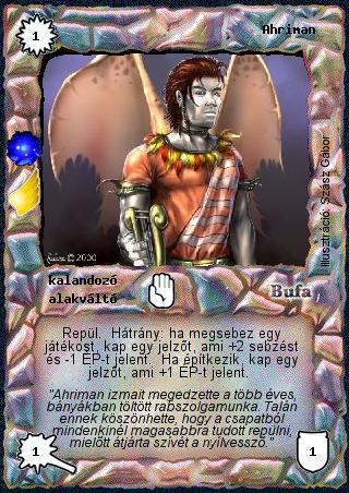 Szinesítő szöveg: "Ahriman izmait megedzette a több éves, bányákban töltött rabszolgamunka. Talán ennek köszönhette, hogy a csapatból mindenkinél magasabbra tudott repülni, mielőtt átjárta szívét a nyílvessző."