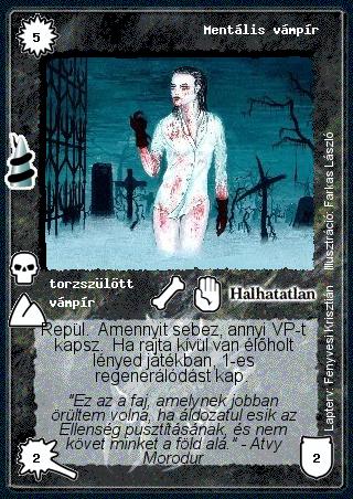 Szöveg: Repül. Amennyit sebez, annyi VP-t kapsz. Ha rajta kívül van élőholt lényed játékban, 1-es regenerálódást kap.