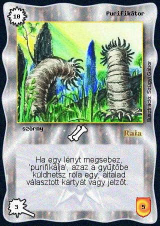 Szöveg: Ha egy lényt megsebez, 'purifikálja', azaz a gyűjtőbe küldhetsz róla egy, általad választott kártyát vagy jelzőt.