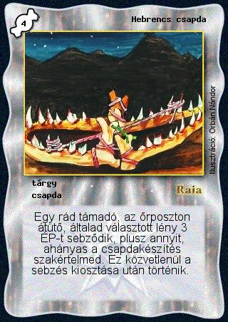 Szöveg: Egy rád támadó, az őrposzton átütő, általad választott lény 3 ÉP-t sebződik, plusz annyit, ahányas a csapdakészítés szakértelmed. Ez közvetlenül a sebzés kiosztása után történik.