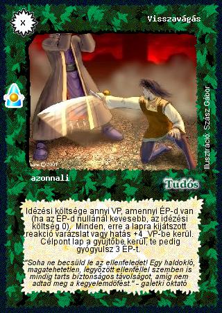Szöveg: Idézési költsége annyi VP, amennyi ÉP-d van (ha az ÉP-d nullánál kevesebb, az idézési költség 0). Minden, erre a lapra kijátszott reakció varázslat vagy hatás +4 VP-be kerül. Célpont lap a gyűjtőbe kerül, te pedig gyógyulsz 3 ÉP-t.