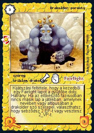 Szöveg: Kijátszási feltétele, hogy a kezedből egy Fairlight lapot a gyűjtőbe dobj. Hátrány: Ha az előkészítő fázisodban nincs másik lap a játékban, amelynek nevében vagy altípusában a drakolder szó szerepel, választhatsz, hogy sebződsz 2 ÉP-t vagy vesztesz 2 VP-t.