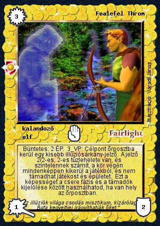 Szöveg: Büntetes: 2 ÉP. 3 VP: Célpont őrposztba kerül egy kisebb illúziósárkány-jelző. A jelző 2/2-es, 2-es tűzlehelete van, és színtelennek számít, a kör végén mindenképpen kikerül a játékból, és nem támadhat játékost és épületet. Ezt a képességet a csere fázis és a támadók kijelölése között használhatod, ha van hely az őrposztban.