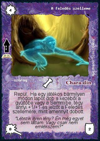 Szöveg: Repül. Ha egy játékos bármilyen módon lapot dob a kezéből a gyűjtőbe vagy a Semmibe, tégy annyi +1/+1-es jelzőt a Feledés szellemére, mint amennyit dobott.