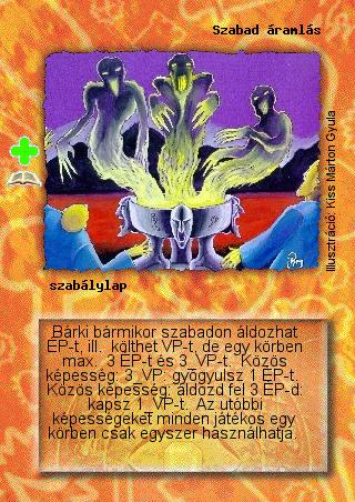 Szöveg: Bárki bármikor szabadon áldozhat ÉP-t, ill. költhet VP-t, de egy körben max. 3 ÉP-t és 3 VP-t. Közös képesség: 3 VP: gyógyulsz 1 ÉP-t. Közös képesség: áldozd fel 3 ÉP-d: kapsz 1 VP-t. Az utóbbi képességeket minden játékos egy körben csak egyszer használhatja.