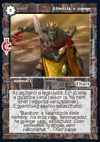 Szinesítő szöveg: "Barátom, a kalandozók élete kemény. Ha erős vagy, fennmaradsz; ha gyenge vagy, elpusztulsz. Ezen semmiféle nyafogás nem változtathat." - Tharr papja