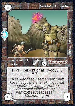 Szinesítő szöveg: "A sziklaóriások sámánjaik miatt közel legyőzhetetlenek. Hogy ezt megelőzzük, legegyszerűbb a sámánokat elintézni egy jól irányzott savcsapással." - Morzdomigron