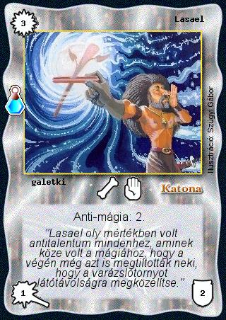 Szinesítő szöveg: "Lasael oly mértékben volt antitalentum mindenhez, aminek köze volt a mágiához, hogy a végén még azt is megtiltották neki, hogy a varázslótornyot látótávolságra megközelítse."