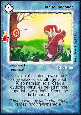 Szöveg: Közvetlenül azután játszhatod ki, hogy valaki kijátszott egy lapot. A lap nem jön létre, csak a gyűjtőbe kerül, és neked minden lapodat a kezedből a Semmibe kell dobnod.