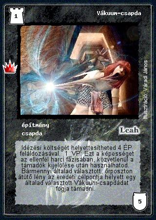 Szöveg: Idézési költségét helyettesítheted 4 ÉP feláldozásával. 1 VP: Ezt a képességet az ellenfél harci fázisában, közvetlenül a támadók kijelölése után használhatod. Bármennyi általad választott, őrposzton átütő lény az eredeti célpontja helyett egy általad választott Vákuum-csapdádat fogja támadni.
