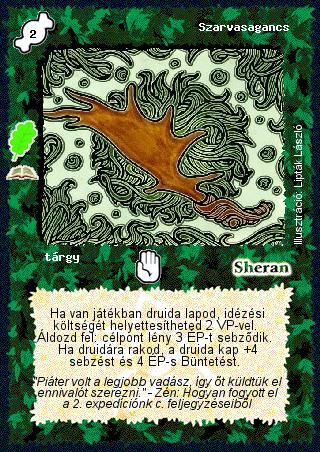 Szöveg: Ha van játékban druida lapod, idézési költségét helyettesítheted 2 VP-vel. Áldozd fel: célpont lény 3 ÉP-t sebződik. Ha druidára rakod, a druida kap +4 sebzést és 4 ÉP-s Büntetést.