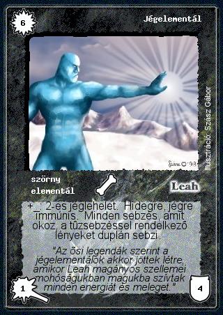Szinesítő szöveg: "Az ősi legendák szerint a jégelementálok akkor jöttek létre, amikor Leah magányos szellemei mohóságukban magukba szívtak minden energiát és meleget."