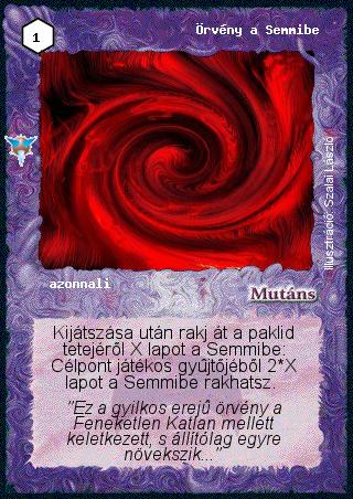 Szöveg: Kijátszása után rakj át a paklid tetejéről X lapot a Semmibe: Célpont játékos gyűjtőjéből 2*X lapot a Semmibe rakhatsz.